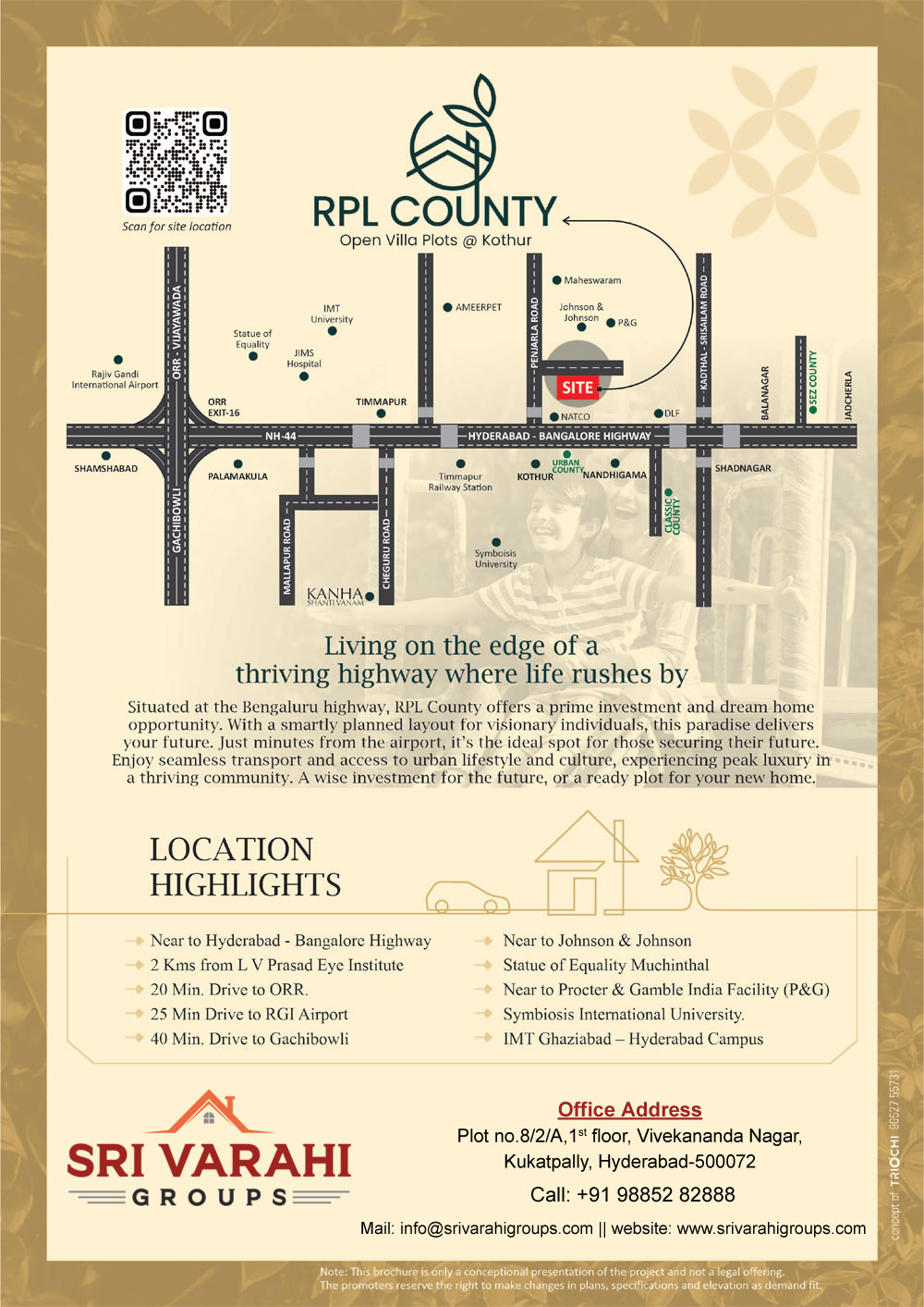 Situated at the Bengaluru highway, RPL County offers a prime investment and dream home opportunity